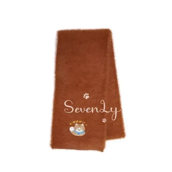 【ホワイトデーギフト】「2025秋冬新作」MEWJIオリジナル マフラー ふわふわ猫刺繍 ストール レディース ダークブラウン