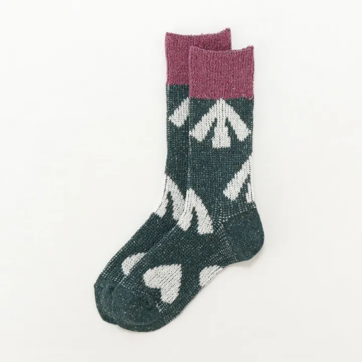 イギリス政府の所有物を表すマーク、Broad Arrow(ブロードアロー)。 矢はイギリス軍の重要な武器として位置付けられており、矢じりから様式化されることで完成したマークです。 今では様々なブランドのモチーフとして使用される例があります。 1600年代後半から使用されるようになり、1920年代までは囚人服にも用いられていました。 参政権を求めるために活動を続けたサフラジェットたち。 人々の共感を得るために行動をした彼女たちは、醜悪で劣悪な環境である刑務所に収監され、いのちをかけて戦いました。 まだ100年ほどしかたっていない最近の話です。 彼女たちをリスペクトして完成した靴下です。 SILK92%,POLYESTER6%,POLYURETHANE2% 日本製