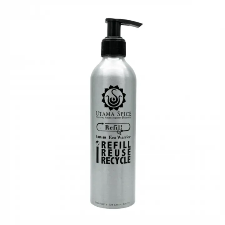 250mlのポンプタイプです。 ウタマスパイスの店頭ではリフィル(詰め替え)による廃棄物の原料に取り組んでいます。 このボトルを使うことによって私たちと海や、森、空を守りましょう。