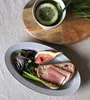 深みがありシャープなフォルムのオーバルプレート。マットな質感とアッシュカラーでスタイリッシュな空間を演出します。