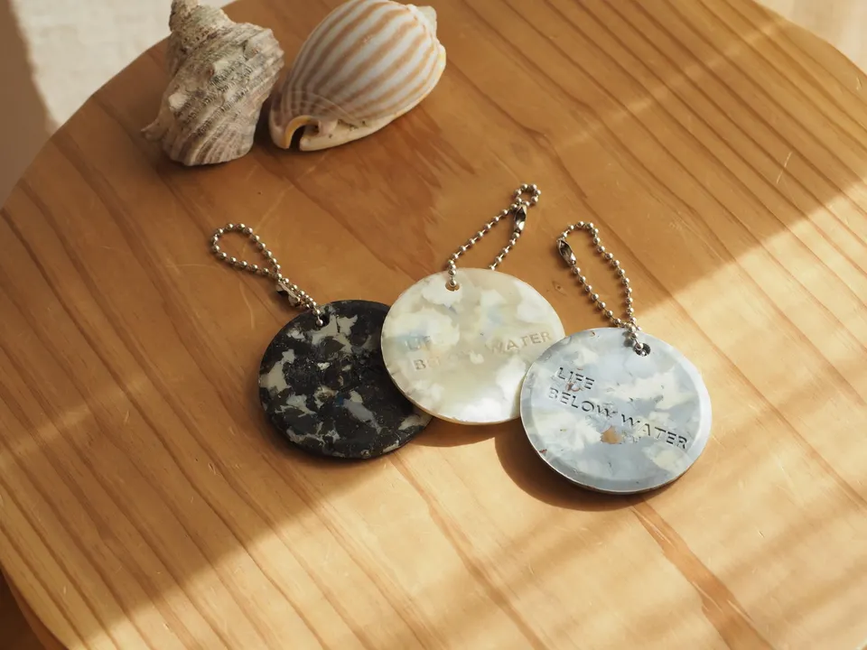 幾何形体モチーフのシンプルなキーホルダーシリーズが誕生しました。大人の男性でもファッションの一部に取り入れやすいをコンセプトにbuoyの特徴であるマーブル模様を楽しめるデザインになっています。 表面にはbuoyのロゴ、裏面にはSDGsの目標キャッチコピー「LIFE BELOW WATER(海の豊かさを守ろう)」が刻印されています。 <仕様> プラスチック部のサイズ 50×50×4mm キーホルダーはシルバーの2重リング方式となっております。 尚、キーホルダー部は仕様が変更になる場合がございます。