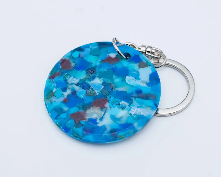 海洋プラスチックから生まれた、buoyの丸キーホルダーです。 幾何形体モチーフのシンプルなキーホルダーシリーズが誕生しました。 大人の男性でもファッションの一部に取り入れやすいをコンセプトにbuoyの特徴であるマーブル模様を楽しめるデザインになっています 表面にはbuoyのロゴ、裏面にはSDGs14の目標キャッチコピー「LIFE BELOW WATER(海の豊かさを守ろう)」が刻印されています。 buoyの製品は、着色などの加工を一切加えず、海岸に漂着し回収された海洋プラスチックそのものの色味を活かしています。 明るい発色が魅力の素材ですが、複数の色が混ざり合うことで、有機的なモザイク模様に。ひとつとして同じ表情がない、世界に一つだけの製品です。 日常に彩りを添える一品として。 自分へのご褒美にも、ギフトにもおすすめです。
