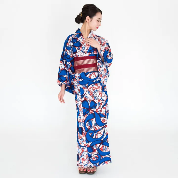 アフリカ布・パーニュを仕立てたレディース用の浴衣。 ※帯・下駄は付属しておりません。 ※色柄の出方は一点ずつ若干異なります。