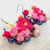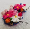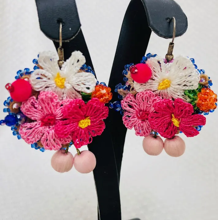 サイズ:約φ5cm フック部分含む最長約5.5cm 色鮮やかなお花のモチーフに様々なビーズなどをちりばめたピアス 耳元で華やかでキュートにお顔周りを彩ります。 トルコの伝統手芸 oya 起源は不明らしいのですが、大昔は 魚を捕る網がすでにその技法だったといわれています。 イスラムの女性たちは髪を隠すためにスカーフを覆います。 はるか昔に使われていたその技法が、イスラムの文化圏でスカーフの縁どりに 装飾されおしゃれを楽しむようになったようです。 オヤはトルコ語で縁飾りを意味します。 技法や手法によって呼び名が変わるそうです。 針を使う技法、かぎ針を使う技法 または、ビーズや石などを編みこんでいる手法など。
