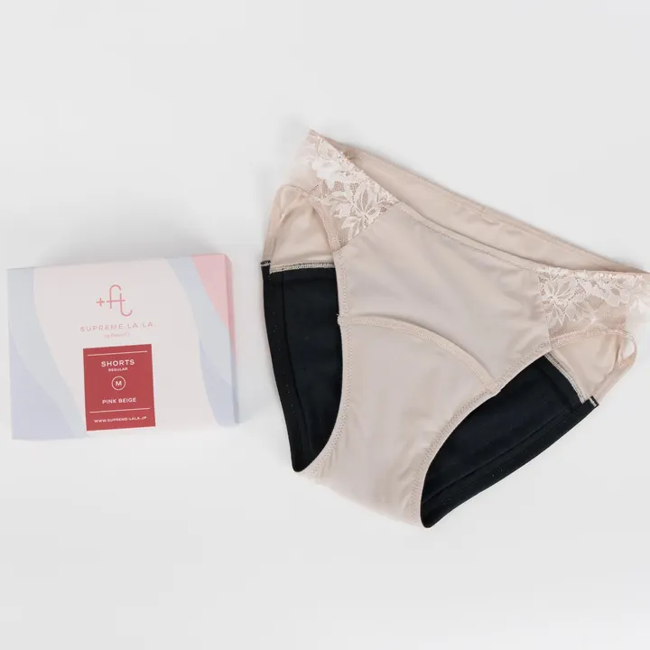 【吸水ショーツ】サイドレースレギュラー吸水ショーツ COLOR:ピンクベージュ SIZE:LL