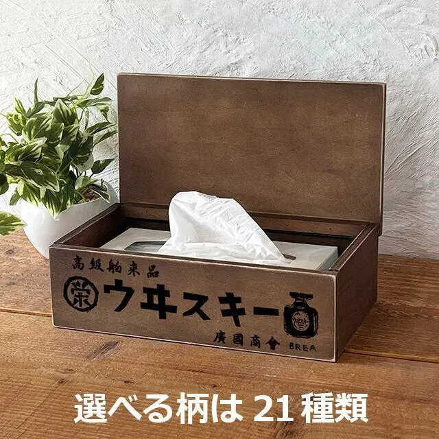 北海道 旭川市の自社工場で製作しています 懐かしい感じがする 昭和レトロな柄がおしゃれ プリントは正面のみ フタは無地です フタがついているので、 パッと見 ティッシュケースに見えません。 ペットのいたずら防止にもOK。 ■商品サイズ 約 横幅270×奥行138×高さ90mm 内寸 約 横幅252×奥行122×高さ73mm (板の厚みなどで、多少の誤差が出る場合があります) ■材質 合板を使用。 木目、色合いなどが1つ1つ違います。 高さ72mmまでのスリムボックスティッシュが入れられます。 ※ ボックスティッシュはメーカーによりサイズが異なります。 サイズをお確かめの上ご購入下さいますようお願い致します。