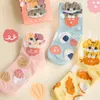【2025春夏新作】猫イラスト 猫柄 靴下3足セット ピンク・ブルー色『MEWJIミャオジ』 ☆ファッション |画像の色 (1組3足)5点セット