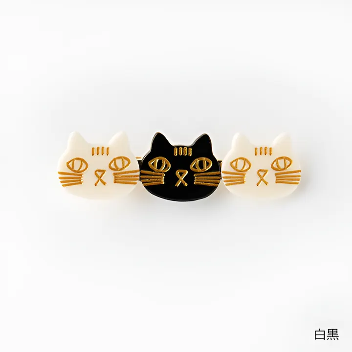 ネコヘアクリップB ネコ白黒