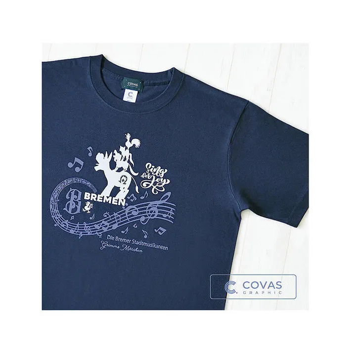 ユニセックス・半袖プリントTシャツ "ブレーメンの音楽隊" ネイビー デザインTシャツ 503002-29 size: S