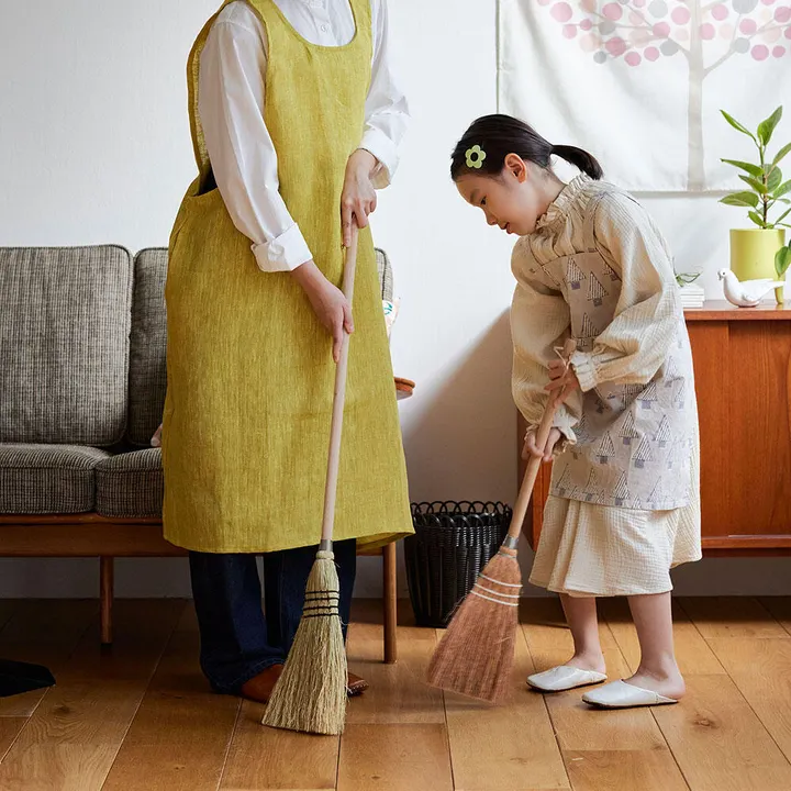 シンプルで、自然素材のナチュラルな風合いが魅力のホウキ。 壁に吊るしておくだけでインテリアにもなり、思い立ったときに気軽にお掃除ができます。 軽いので扱いやすく、腰高くらいの背丈と細身の形は使いやすさも兼ね備えています。 SORGHUM(ソルガム)について ソルガムとは、モロコシと呼ばれるイネ科の一年草のことで、穂先がしなやかでわずかに油分を含むのが特徴です。 中でも穂の部分が長く揃っているモロコシは、昔から座敷箒(ざしきほうき)の原料として使われてきました。モロコシで作られたホウキで畳の上を掃くと畳につやを与えることができ、とても合理的な掃除道具として日本人には馴染み深いアイテムです。