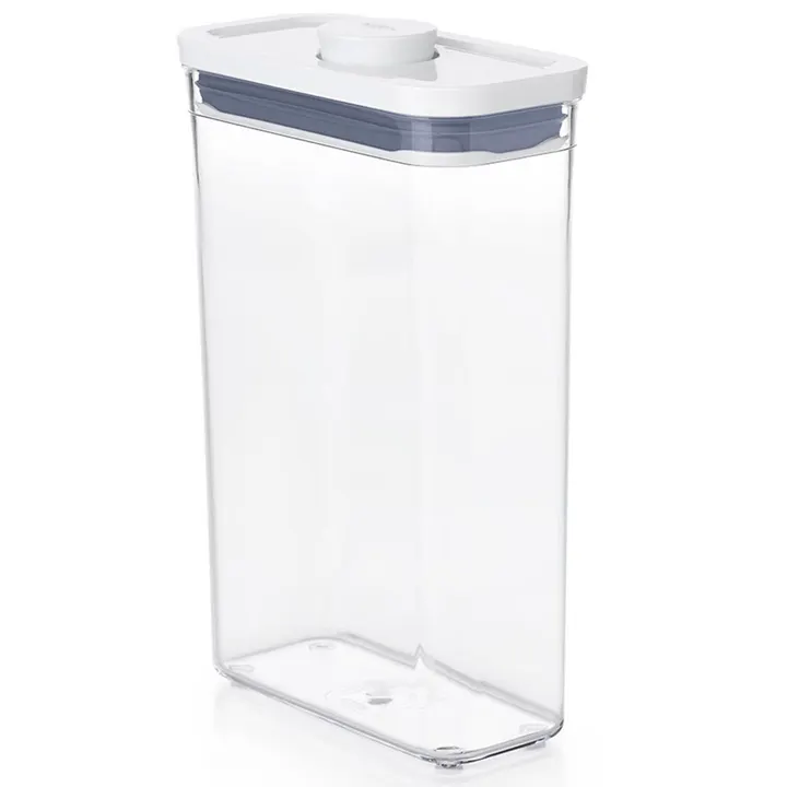 "魅せる収納"で人気のポップコンテナ フタの真ん中についているボタンを押すだけで開閉ができ、ポップアップしたボタンはそのままハンドルとして使えるドライフード用の保存容器です。調理中や、片手がふさがっていても、ワンタッチ操作で密閉が可能です。 フタの形はミニスクエア、スモールスクエア、ビッグスクエア、スリムレクタングル、レクタングルの5種類。高さは小さいほうから順にミニ、ショート、ミディアム、トールの4種類です。 高さはミニを基準にミニの2倍がショート、3倍がミディアム、4倍がトールと全てのフタの形に共通しているので、カウンターや戸棚の中でスッキリ整理整頓ができます。サイズ違いでもきれいにスタッキング(積み重ねて収納)ができます。 スクエア形状の容器は省スペースで収納できるだけでなく、掴みやすく、角から中身を注ぎやすいのも特徴です。毎日使うものだからこそ、使い勝手の良さを追求した保存容器です。 また、ポップコンテナに合わせてお使いいただける各種アクセサリーもあります(別売り)。フタの裏に装着して収納できるので、別にスプーンを用意したり、コンテナの中で埋まって見えなくなってしまうこともありません。 ポップコンテナは全部で18サイズありますので、入れるものの量や形にあわせてお選びください。フタは内側のパーツを取り外してお手入れが可能です。ボタンのついているフタ以外は漂白剤がご使用いただけます。すべてのパーツは食器洗い乾燥機(低温設定)がご使用いただけます。 適合アクセサリータイプ: ポップスクープ / コーヒースクープ / 粉ふるいスクープ / ライスカップ / シュガーキーパー