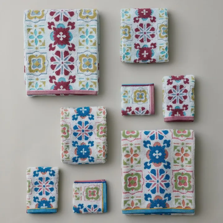 【英国ヴィクトリア調のタイル柄 今治ハンカチ】ふっくら無撚糸と杢糸で多彩な織り上がり マジョリカ ふっくら無撚糸と杢糸で多彩な織り上がりの、デザイン性が高いタオルです。 凹凸感が魅力の英国ヴィクトリア調のタイル柄が、他にない存在感を放ちます。 他にない色使いが目を惹く、インテリアの一部としてお楽しみいただけます。 今治ブランド認定商品で、吸水性や毛羽落ち試験など厳しい基準をクリアした製品です。 ※JANシールの発行を希望される場合は、ご注文の際にメッセージをお願いいたします。 ※表示上の在庫がない場合や、100枚以上をご希望の場合はメッセージまたは電話にてお問合せください。 ※ギフトBOXでの対応も可能ですので、ご希望の場合はメッセージまたは電話にてお問い合わせください。(BOXは有料にて対応します。)