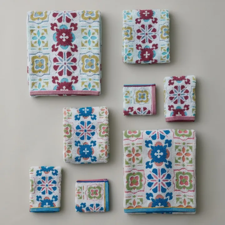 【英国ヴィクトリア調のタイル柄 今治ハンカチ】ふっくら無撚糸と杢糸で多彩な織り上がり マジョリカ ふっくら無撚糸と杢糸で多彩な織り上がりの、デザイン性が高いタオルです。 凹凸感が魅力の英国ヴィクトリア調のタイル柄が、他にない存在感を放ちます。 他にない色使いが目を惹く、インテリアの一部としてお楽しみいただけます。 今治ブランド認定商品で、吸水性や毛羽落ち試験など厳しい基準をクリアした製品です。 ※JANシールの発行を希望される場合は、ご注文の際にメッセージをお願いいたします。 ※表示上の在庫がない場合や、100枚以上をご希望の場合はメッセージまたは電話にてお問合せください。 ※ギフトBOXでの対応も可能ですので、ご希望の場合はメッセージまたは電話にてお問い合わせください。(BOXは有料にて対応します。)