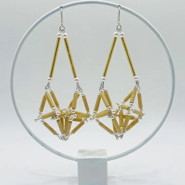 テキスタイルシリーズ◯GlitterBeige◯ 細長い竹ビーズを残布のグリッター入りのベージュ布を使用し、一からビーズを作っています 仕上げにコーティングしているので水に濡れても丈夫な仕様となっています こちらの残布は私が洋服制作の時に出た残布です mUIk定番3Dハートシリーズのピアス/イヤリングです。 少し大振りですが、とても軽いです。 耳の負担は軽減されてますのでご安心ください。 ⁂mUIk UPCYCLE Story⁂ 衣服の大量生産・大量消費が拡大し、ライフサイクルの短期化によって大量破葉に繋がっているこの現状にファッションが大好きな私にとってとてもショッキングなことでした。 ただ捨ててしまう衣服や残布を私もなりにどうにか再利用することができないか考えた時 出来上がったのがこの作品です。 ほんの少しのことかもしれませんが少しでも持続可能なことに貢献できたら幸いです。
