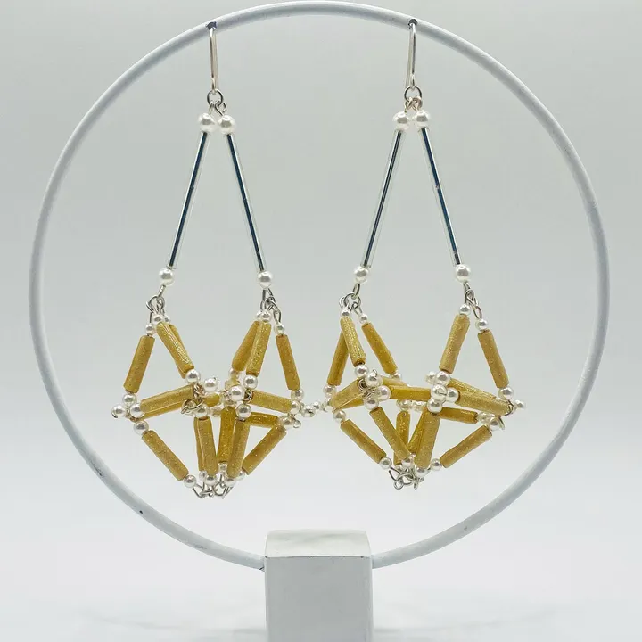 テキスタイルシリーズ◯GlitterBeige◯ 細長い竹ビーズを残布のグリッター入りのベージュ布を使用し、一からビーズを作っています 仕上げにコーティングしているので水に濡れても丈夫な仕様となっています こちらの残布は私が洋服制作の時に出た残布です mUIk定番3Dハートシリーズのピアス/イヤリングです。 少し大振りですが、とても軽いです。 耳の負担は軽減されてますのでご安心ください。 ⁂mUIk UPCYCLE Story⁂ 衣服の大量生産・大量消費が拡大し、ライフサイクルの短期化によって大量破葉に繋がっているこの現状にファッションが大好きな私にとってとてもショッキングなことでした。 ただ捨ててしまう衣服や残布を私もなりにどうにか再利用することができないか考えた時 出来上がったのがこの作品です。 ほんの少しのことかもしれませんが少しでも持続可能なことに貢献できたら幸いです。