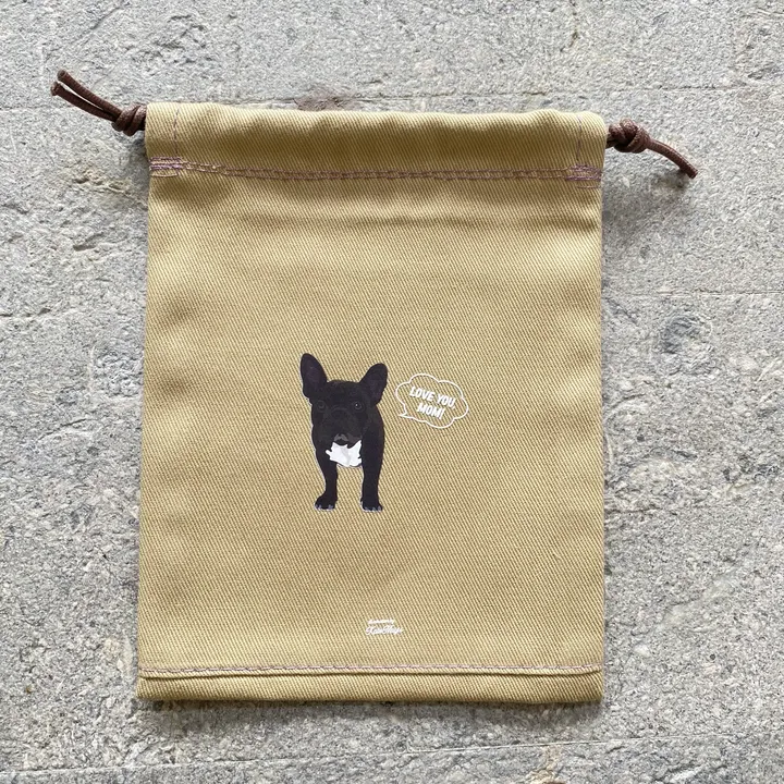 【Lサイズ巾着】 オリジナルイラスト わんこモチーフ 巾着 クリスマスプレゼントにも◎ フレンチブルドッグ フレンチブルドッグ / ブリンドル