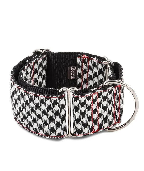 Ribesは伝統を感じさせるクラシックなデザインが魅力なマーチンゲールカラーです。 千鳥格子や英国王室のチェック柄、タータン、ツイードなど、本物の英国プリントが秋の季節にぴったり。 異なる素材の絶妙な組み合わせで、愛犬とのおしゃれなひとときをお届けします。同柄のリードと合わせればコーディネートも完璧。 ? 高品質なブラックナイロンウェビングを使用し、手作業で丁寧に仕上げています。 しっかりとした耐久性があり、手触りも滑らかで快適。ナイロンの上に生地が縫い付けられ、洗練されたデザインに仕上がっています。 ? マーチンゲールカラー 幅が4cm、5cmと通常よりも広め。頭と首が細長く通常の首輪では抜けてしまうハウンド犬種に、特にぴったりのハーフチョークタイプです。 ハウンド系犬種以外でも幅広くお使い頂けます。頭からかぶせて着用するので、頭のサイズも必ずご確認ください。