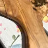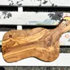 サイズ:約31×12~15×厚み1.5cm 重さ422g これこそ北アフリカの大自然アート、長い年月の間に厳しい自然と共に何百年も育った結果ですが、この作品は圧倒的に「見ごたえ」があります。目にするたびに喜びが湧き出るでしょう。 約500年の幹、一枚板からうまくとった画期的な「薄型」のまな板です!! *オリーブのです。北アフリカではオリーブの木は1000年近くも生きる不死身「聖なる木」とされます。 *オリーブの木を加工する前に天日干し2年以上、または丁寧な塩水漬けと乾燥炉1か月以上いれるという工程がありますが、こちらの「薄型」はもっともバランスよく乾燥に成功した板をつかって製作してもらっています。 オリーブの木のキッチン用品は1-2㎝の厚みが基本、密度が高く重いのが特徴でした、日本市場にでまわっているのも厚さ2㎝が基本です。薄型に加工できあがる前に、ヒビや割れがでてくるので薄型アイテムの中では中型の大きさです。 *薄型なので軽さがとりえです。キッチンで軽快に使ったり、テーブルウェアとして使ったり、楽しみ方は無限大。 少し歪あり。がたつきはフキンを敷くなどで軽減されます。 コンパクトな大きさは、卓上でパンやチーズ、オードブルやフルーツを盛り付けるのにちょうどいいサイズです。 ワインを片手にダイニングへ、生ハムなどの盛り付けにも。 そのままお皿としてご利用いただけます。軽いのでもちろんピクニックなどお外にも軽々ともっていくことができます。