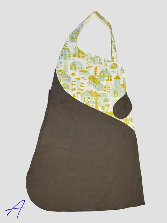 首ベルト、ウエストベルト 面ファスナー(マジックテープ)ワンタッチエプロンannabelleに北欧プリント登場! 胸元に、北欧リネン「ビレッジ」をあしらった大胆なプリント スカート部分にはブラウンリネンとテールグリーンコットンの2タイプを合わせたコンビエプロン 北欧リネンのビレッジには、白地にちいさな村の小屋や木々が淡い色調で描かれtいます。 カーブを大胆に用いた構築的デザインは斬新ですが、身に着けてみると、驚くほどフィットします。 前身頃だけの分量なので、軽く、ウエストベルトでしっかり腰を固定させれば、首への負担も軽減できます。 食関係のお仕事はもちろん、ショップなどのユニフォームとしても幅広くお使い頂けます。 プレゼントとして一押し! プリントの出方が少しずつ違っていることとスカート部分の生地が違うので、A~Cでお選びください。 ポケット: 右ポケット ウエスト: ゴムとベルトを合わせて 面ファスナー(マジックテープ)で留めるタイプ 肩ひも: ゴムとベルトを合わせて 面ファスナー(マジックテープ)で留めるタイプ