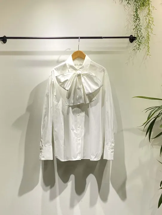 着回し自由でシンプルなシャツブラウスです。大きめのリボンタイを結んだスタイリングが特徴でおすすめ。 ワードローブには必ずほしい、大活躍する万能アイテムです。 再生ポリエステルを原料とする特殊構造の糸を使用した素材です。 コットンのような優しいタッチと快適な着心地を可能にする、地球と人に優しい素材です。 シワになりにくい、UVカット、吸水速乾、ウォッシャブル、型崩れしにくいetc、 様々な機能を併せ持つイージーケアーに優れた素材です。