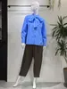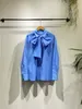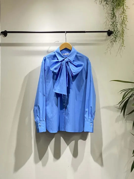 タイ付きシャツブラウス ブルー