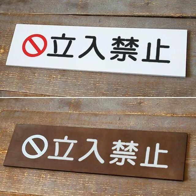 木製プレート 立ち入り禁止 幅43cm ダークブラウン