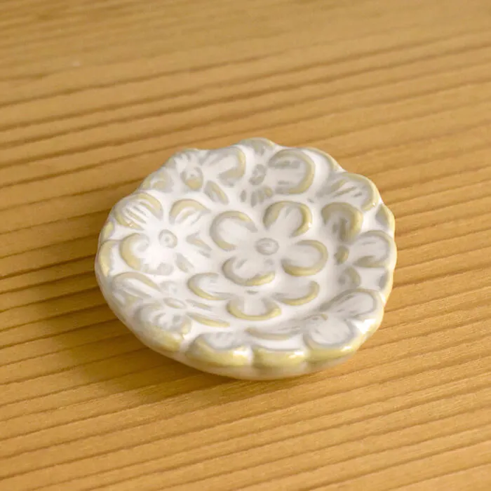 花びらのにぎわいを器の側面やふちに彫刻風に施し 立体的な花びらの凹凸を、釉薬の流れる濃淡で表現、土の風合いも出しています。 料理を盛る面は、凹凸模様が無いので使いやすく、テーブルにも映え、シンプルな色でありながら、やさしく花を咲かせます。こちらのライスボウルは茶碗としてはもちろん、小ぶりなスープ・サラダボウルとしてお使いいただいても様になります。