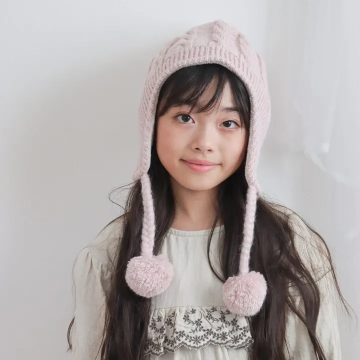キッズ 女の子 ニット帽 ポンポンニット帽子 ピンク パープル ベージュ グリーン 秋 冬 SNK020 ピンク