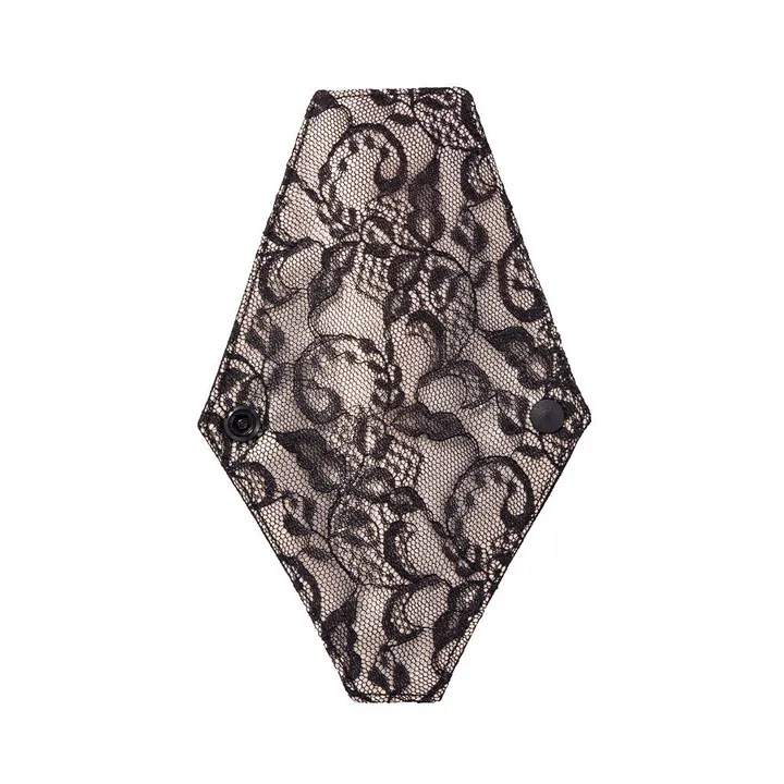 私らしさにこだわりたいリュクスな女性のためのデリケートゾーンランジェリー。 『サニタリーからランジェリーへと世界を変える』 これまで “消耗品” として扱われてきたパンティライナーを、「ランジェリー」という新しい価値 として提案します。 こだわりぬいたレースと、ショーツにすっとなじむシンプルなフォルム。 吸水体が縫い込まれたふんわり仕様で、温かさを感じられるのが特徴です。 防水機能はありませんが、デイリーケアやおしゃれなTバックの日にも寄り添う、特別な一枚です。 <素材>(4層構造) コットンシルク(群馬県産シルク使用・ウォッシャブル加工済み) 吸水体(コットンネル) サテン レース ※防水シートは備えていません。 <商品サイズ> H=約16cm W=約10cm(使用時:約16cm×約4~5cm) <商品の色> 肌面:ブラック(コットンシルク) 外面:ブラックレース・ベージュサテン ※撮影環境により、実際のカラーと多少異なる場合がございます。 【ご使用方法】 ショーツのクロッチ部分に置き、レース面がショーツ側に合わさるようにセットします。 スナップボタンのついているサイドをショーツの外側へと折り返し、合わせてとめてください。 【お手入れ方法】 ・ご家庭の洗濯機で洗っていただけます。 ・乾燥機のご使用は避け、陰干しに。 ・経血や気になる汚れがついてしまった場合は、30度以下のぬるま湯か水につけ置きし、手洗いなどで落としてから、洗濯機へ。
