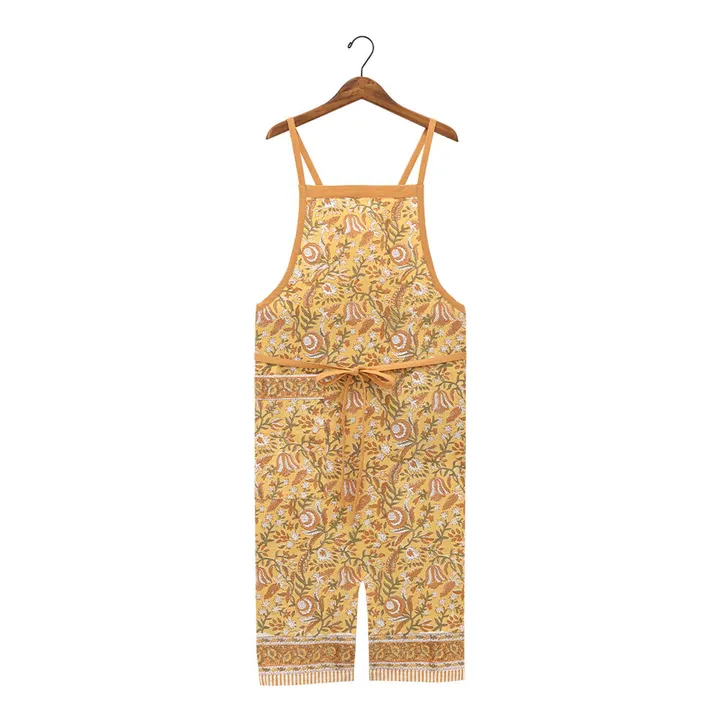 「カリーノ」は「かわいらしい」という意味。心ときめく配色と素朴な花柄が毎日を彩ります。 インドの伝統技法「ブロックプリント」でデザインされた、華やかなボタニカル柄のエプロン。 調理時やガーデニングなど、日々の作業が心ときめく装いに。 「ブロックプリント」は木版を使って、職人がひと版ひと版、手でスタンプを押すように生地の上にプリントするインドの伝統的な技法です。 ※表示数量を超える在庫や、詳しい納期につきましてはメッセージよりお問い合わせください。