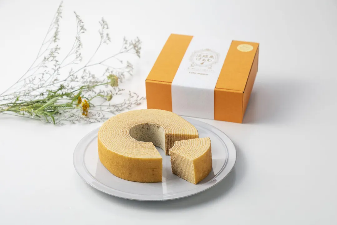 「淡路島の自然恵まれた大地から生まれた、上質な鶏卵、濃厚な牛乳、そして香り高い米粉が織り成す至福のバウムクーヘン。