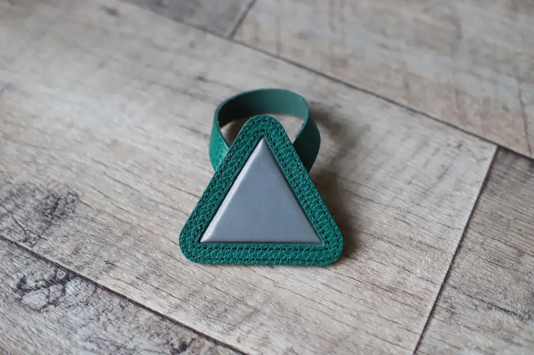 ----イタリアンレザーを使用した三角リフレクター---- イタリアンレザー「TARTUFO」を使用した定番の三角リフレクター。 取り付けも簡単でサドルレールに取り付けるだけ。 可愛いデザインながら強力反射。 (道路交通法の基準を満たすものではございません。) ----こだわりのイタリアンレザー---- こだわりぬいたフルベジタブルタンニンのイタリアンレザーを使用。※イタリアトスカーナ地方の伝統的な植物タンニン鞣し革(バケッタレザー) イルポンテ社の「TARTUFO」タルトゥーフォレザー TARTUFOはイタリア語でトリュフのこと。表面の凹凸がトリュフに似ていることからつけられています。特徴はそのトリュフのような表面の質感。
