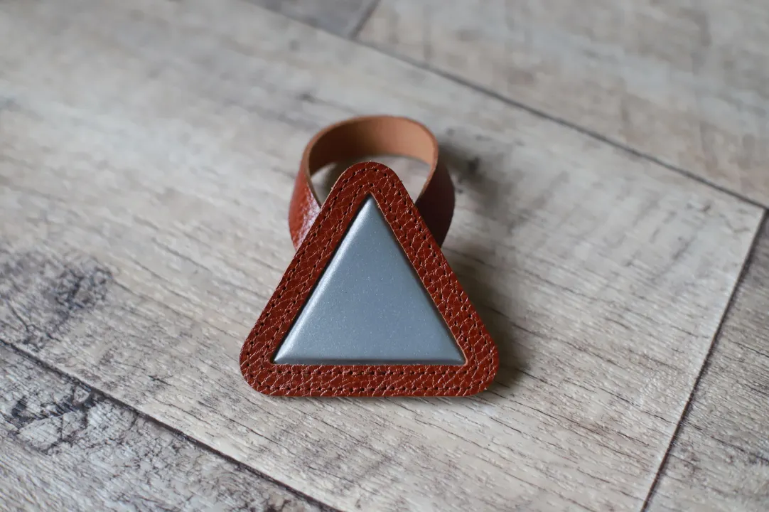 ----イタリアンレザーを使用した三角リフレクター---- イタリアンレザー「TARTUFO」を使用した定番の三角リフレクター。 取り付けも簡単でサドルレールに取り付けるだけ。 可愛いデザインながら強力反射。 (道路交通法の基準を満たすものではございません。) ----こだわりのイタリアンレザー---- こだわりぬいたフルベジタブルタンニンのイタリアンレザーを使用。※イタリアトスカーナ地方の伝統的な植物タンニン鞣し革(バケッタレザー) イルポンテ社の「TARTUFO」タルトゥーフォレザー TARTUFOはイタリア語でトリュフのこと。表面の凹凸がトリュフに似ていることからつけられています。特徴はそのトリュフのような表面の質感。
