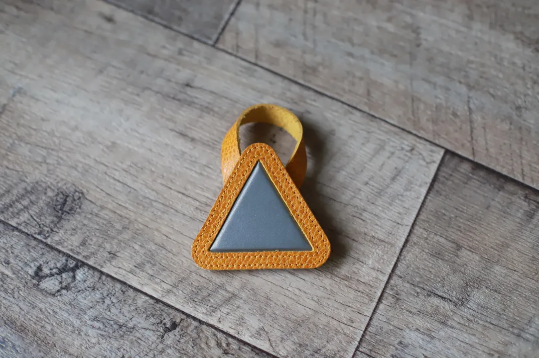 ----イタリアンレザーを使用した三角リフレクター---- イタリアンレザー「TARTUFO」を使用した定番の三角リフレクター。 取り付けも簡単でサドルレールに取り付けるだけ。 可愛いデザインながら強力反射。 (道路交通法の基準を満たすものではございません。) ----こだわりのイタリアンレザー---- こだわりぬいたフルベジタブルタンニンのイタリアンレザーを使用。※イタリアトスカーナ地方の伝統的な植物タンニン鞣し革(バケッタレザー) イルポンテ社の「TARTUFO」タルトゥーフォレザー TARTUFOはイタリア語でトリュフのこと。表面の凹凸がトリュフに似ていることからつけられています。特徴はそのトリュフのような表面の質感。