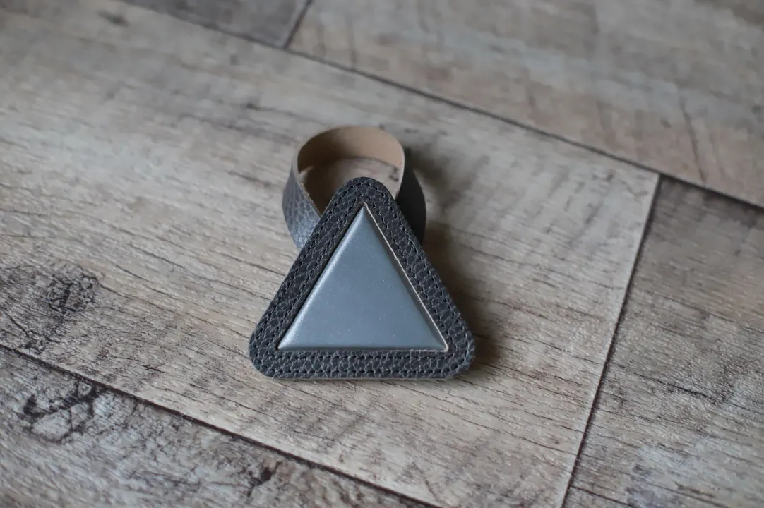 ----イタリアンレザーを使用した三角リフレクター---- イタリアンレザー「TARTUFO」を使用した定番の三角リフレクター。 取り付けも簡単でサドルレールに取り付けるだけ。 可愛いデザインながら強力反射。 (道路交通法の基準を満たすものではございません。) ----こだわりのイタリアンレザー---- こだわりぬいたフルベジタブルタンニンのイタリアンレザーを使用。※イタリアトスカーナ地方の伝統的な植物タンニン鞣し革(バケッタレザー) イルポンテ社の「TARTUFO」タルトゥーフォレザー TARTUFOはイタリア語でトリュフのこと。表面の凹凸がトリュフに似ていることからつけられています。特徴はそのトリュフのような表面の質感。