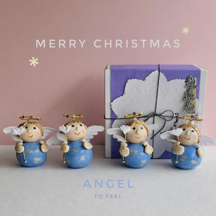 今年からクリスマスメンバーに仲間入りの天使さんです。 優しくて可愛らしい天使です。 ふわりと白い羽をつけて、キラッと素敵な天使の輪♪ お花の杖を持って、幸運を呼んでくれます♪ どこにもなくて、みんなを笑顔にできるような、to feelだけの特別なクリスマスの置物です☆ ☆一つ一つ手作業のため、個体差があります。どの子が届くかはお楽しみに♪ デスクやテーブルの隅っこ、棚の上、おトイレ、玄関、 どこでも好きなところにちょこんと置ける天使のオブジェです。 素敵なクリスマスが訪れますように。。。♪ ************* てびねりでの制作、手書きでや手染めでの色付けの為、 色ムラやにじみ、ぐらつきなどがありますが、手作業の温かみととっていただけると幸いです。 羽やその他パーツはに差し込んで固定してあります。 取り外しはできません。 【素材】 本体 : 陶土 羽: コットン生地 【サイズ】 単体の高さ約5.5cm (それぞれ個体差があります