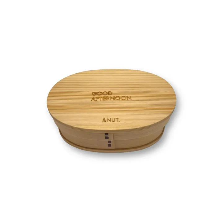 &NUTの定番、わっぱ弁当箱が よりシンプルでミニマルなロゴデザインにリニューアル。杉の木の香りが食欲をより一層かき立てる木製のお弁当箱です。 通気性に富み 殺菌効果があるので、ご飯が蒸れず傷みにくく 時間が経った後でもふっくらとしたおいしさを保つことできます。 日本を感じられるお土産として、インバウンド向けにもオススメです。 S) GOOD AFTERNOON = こんにちは ARE YOU HUNGRY? = お腹減った? IN THE OPEN AIR = 青空の下で LONG AWAITED TIME = 待ちに待った時間 ※天然木を使用しておりますので、木目・色味・寸法には個体差があり、多少のキズ等が入っている場合がありますが、商品の特性として予めご了承ください。 Sizes:175×115×60mm(500ml) Quality:cedar wood Price:3,500JPY(w/o tax)