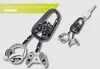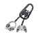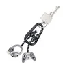 スナップフック付きキーホルダー、クライミングロープにコントローラー&ヘッドセットのペンダント、鋳造金属、クロームメッキ、シャイニーブラック/グレー/シルバーカラー