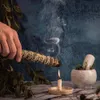 乾燥させたセージなどを 束にして燃やした煙で浄化する方法は「スマッジング」と呼ばれ、ネイティブアメリカンの神聖な儀式の前に行われていました。スマッジの魔法の香りを放つとき、幸運を引き寄せ、無限の可能性の宇宙を展開します。 燃焼時間:約2時間 サイズ Φ30 x H105mm 内容量:5本 素材 ハーブ/天然樹脂/濃縮アロマオイル/天然結合剤/塩 注意事項 ●食べ物ではありません。●不燃性の容器に置いてお使いください。●先端に火をつけてください。●使用中はその場を離れず、煙が立ち込めないように十分な換気を行ってください。●使用後はしっかりと火を消し、灰が完全に冷めてから廃棄してください。●直射日光を避け、湿気が少なく、風通しの良い場所で保管してください。●子供やペットの手の届かない場所に保管してください。●可燃性の材料や物品の近くで使用しないでください。