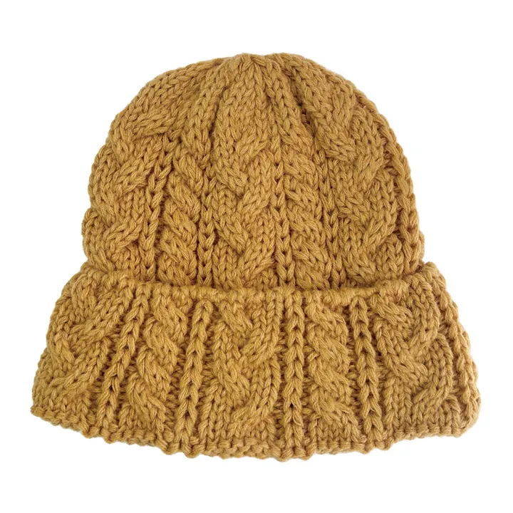 ざっくりとケーブル編みで仕上げたニット帽。ウール混素材なのでウィンタースポーツにも適した暖かい帽子。しっかりとしたボリューム感が綺麗なシルエット。