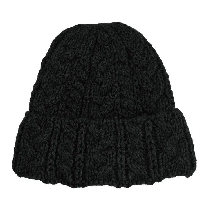 ざっくりとケーブル編みで仕上げたニット帽。ウール混素材なのでウィンタースポーツにも適した暖かい帽子。しっかりとしたボリューム感が綺麗なシルエット。