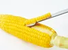 茹でたり蒸したコーンの粒をポロポロはずせるコーンピーラー。 コーンの芯に沿ってきれいにカットできるよう刃先のカーブを設計しています。 持ち方は、EAトCOのロゴが表に来るように持ってください。 コーンスープやかき揚げなどの料理支度や、お年寄り、幼児の食べやすいように取り分けするときにも便利です。