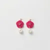 シンプルパールイヤリング 赤