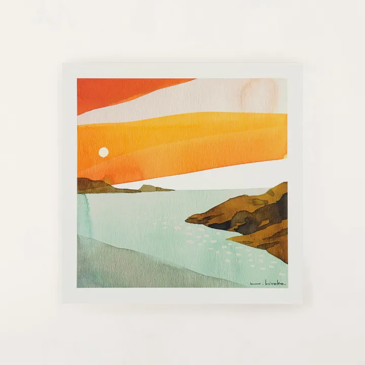 ※フレームは別売りです <デザイナープロフィール > ハシモトヒロコ / Hiroko Hashimoto 愛媛県出身、香川県在住の水彩画家。奈良芸術短期大学美術学科洋画コース卒業後、WEBデザイナーとしての経験を経て、2020年よりアーティスト活動を開始。水彩特有の滲みや透明感、色と色が干渉しあうことで偶発的に生まれる色の輪郭に魅了され、現在は地元を拠点に、個展を開きながら作品を発表している。 <About the Paper> 発色の良さと紙の風合いという相反する性質を高いレベルで両立させた高級印刷用紙で、FSC認証※も取得しているヴァンヌーボV-FSの最厚紙を使用。 ※FSC認証とは「森林の管理や伐採が環境や地域社会に配慮して行なわれているかどうか」を評価・認証し、そうした森林に由来する製品(適正管理された森林木材による製品)であることを証明するものです。運営は、NGOであるFSC(Forest Stewardship Council®:森林管理協議会 本部ドイツ)が行っています。 <サイズバリエーション> ・200×200mm ・300×300mm