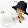 シルク混 つば広 ハット サーモ あご紐 軽量 通気性 帽子 レディース BLACK