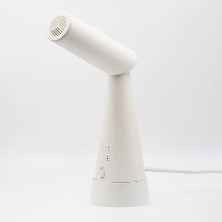スタンドデザインにより実現する「置き型スタイル」。ドライヤーを持たない手軽さだけでなく,髪を解きながらのブローも可能です。
