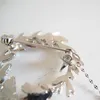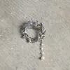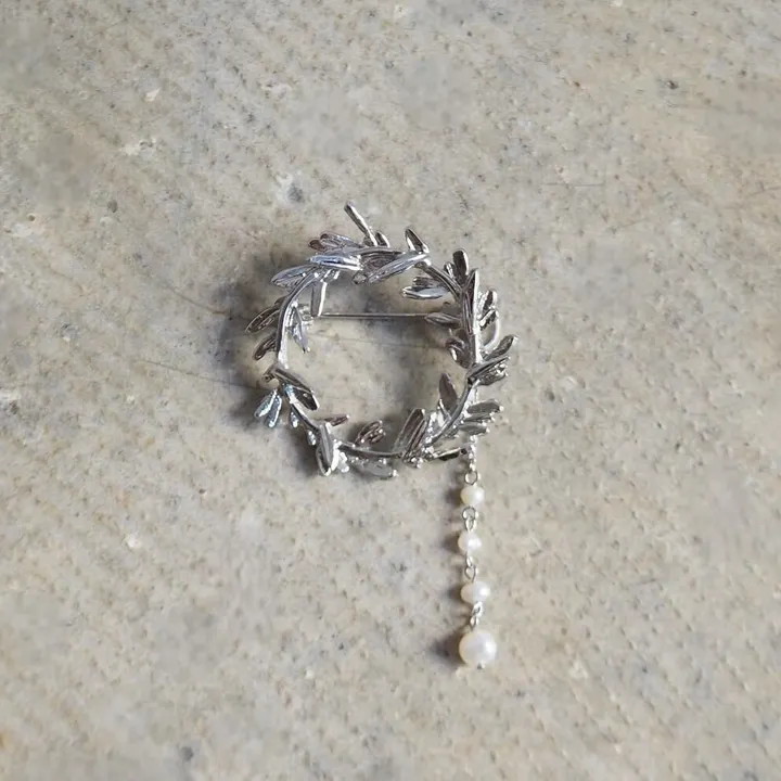 ブローチ【Multi】リーフ+淡水パールブローチ*サークル 小さな葉の表情を丁寧に表現した ディティールの美しさ際立つ2つのブローチ フォーマルな装いを華やかに彩るだけでなく 時にカジュアルな趣を覗かせる ロジウムカラーのブローチが登場 取り外しできるパールチャームのつけ外しで シーンに合わせた装いが叶います ◆ POINT ◆ ・メタリックな美しさが引き立つロジウムカラーをまとう、細やかなリーフでかたどったクラシカルなブローチ。 ・フォーマルなシーンにもデイリーにもしっくりと馴染むブローチは、上品で落ち着きのある凛とした佇まい。 ・小さなリーフがぐるりと連なる月桂樹やオリーブの冠のようなサークル型の本体は、直径は4cmほどと程よい大きさで抜け感のあるデザイン。 ・チェーンに小粒の淡水パールを連ねた揺れ感のあるチャームは取り外し可能。ブローチ本体のみで、パールチャームを付けて、異なる2つの表情を楽しんでいただける2way仕様。 ・Oucaのロジウムカラーのイヤリングやパールアイテムとコーディネートいただくのもおすすめ◎ ◎ブローチ着用時のご注意 ●淡水パールのチャームはブローチの針部分に通しており、固定されていません。ブローチの着け外しの際は落下や紛失にご注意ください。 ●シルクや薄手のニットやブラウスなど繊細な生地のアイテムへの着用は穴や引きつれ等、生地を傷める恐れがあります。厚手の生地のジャケットやアウターの襟などがおすすめです。 ●ピンの幅いっぱいに生地をすくい着用することで重さでブローチがぶら下がらず、ブローチの傾きを防ぎながら生地への負荷も軽減できます。 ●着用する位置は、一般的には左胸の鎖骨あたりの肩のラインから少し下がった位置がバランスが良いとされていますが、ぜひシーンやコーデに合わせてお好みの位置やバランスでお楽しみください。 商品には専用のBOXが無料で付属しますので、ギフトにも最適です◎
