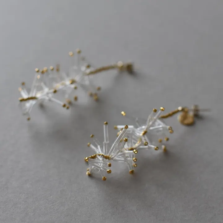 星と星とを繋ぎ合わせると 星座が描き出されるように 何もないように見える場所でも 見方を変えれば 美しい世界が広がっているのではないでしょうか 無数に溢れている点を 心を研ぎすませて 見つめていれば….. material K14GF ゴールドフィルド(ピアス金具)、SILVER925 金メッキ(イヤリング金具)、ガラスビーズ、真鍮、テグス *ゴールドビーズは本金メッキ加工を施したものを使用しております size 約30x78mm weight 約2.4-3.4g *取り付ける金具によって、重さが異なります *CACICOの商品は全て1点1点制作しているため、個体差があり、商品写真と差がある場合がございます。ご了承の上、ご購入ください。 *金属アレルギーの方はご使用をお控えください