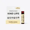 世界中にやさしいことばと香りを広めるナチュラルリップケアブランド「カインドリップス」。100%ナチュラルのフォーミュラはそのままに、まるでフルーツそのままのフレーバーを実現。スティックリップバームでは珍しいオーガニックココナッツオイル(保湿)を25%以上も含み、オーガニックのオリーブオイル、ミツロウ、ホホバオイル、シアバターと合わせ保湿成分が95%以上も入ったやさしくきめ細かいロングラスティング処方。オーラルケアにも使用されるココナッツオイルは口元を健やかにに保湿してくれます。日本での利益の20%を国内のいじめ防止活動に寄付します