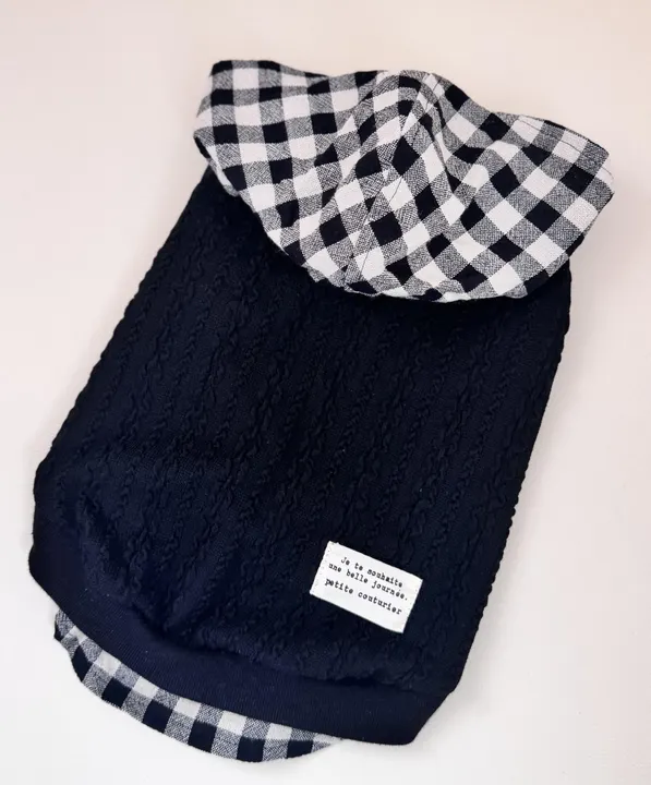 キキンガムチェックが映えるシックな犬服です。アラン風ニットで落ち着いた質感をだしつつ、フードや裾からちらりと見えるチェック柄がアクセントになり、普段のお散歩からお出かけまで幅広く活躍します。 柔らかく伸縮性のある生地で着脱しやすく、1枚でおしゃれにきまる万能アイテムです。 ★綿麻ウォッシュチェック 綿の柔らかさと麻のしなやかさを折り合わせた上質素材。 ウォッシュ加工により、さらりとしたハリコシのなかにもふっくらした柔らかさを感じさせる微妙な風合いです。 ★アラン風ニット 程よい厚みと、ふんわり柔らかく伸縮性があります。 ンガムチェックが映えるシックな犬服です。アラン風ニットで落ち着いた質感を出しつつ、スカート部分に大きめのチェック柄を組み合わせ上品で存在感のあるデザインにしあげました。 ★綿麻ウォッシュチェック 綿の柔らかさと麻のしなやかさを折り合わせた上質素材。 ウォッシュ加工により、さらりとしたハリコシのなかにもふっくらした柔らかさを感じさせる微妙な風合いです。 ★アラン風ニット 程よい厚みと、ふんわり柔らかく伸縮性があります。